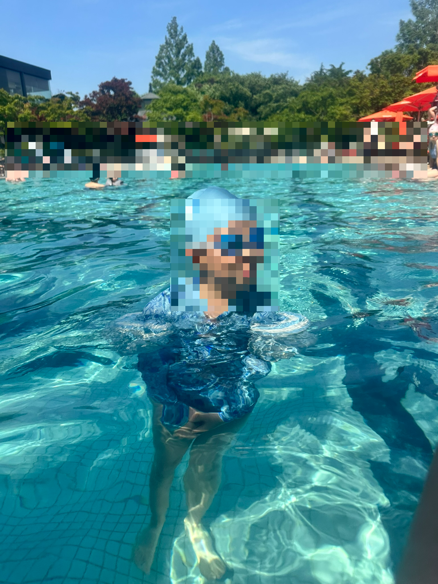 가장 좋았던 점은 수영장이 정말 넓다는 거예요. 주말이라 사람이 꽤 있었는데도 전혀 붐빈다는 느낌 없이 저희 가족끼리 여유롭게 물놀이를 즐길 수 있었어요. 아이가 신나게 첨벙거려도 다른 사람에게 방해될까 걱정하지 않아도 되니 마음이 편하더라고요. 수질 관리도 어찌나 잘되는지, 물이 정말 깨끗해서 안심하고 놀 수 있었어요.