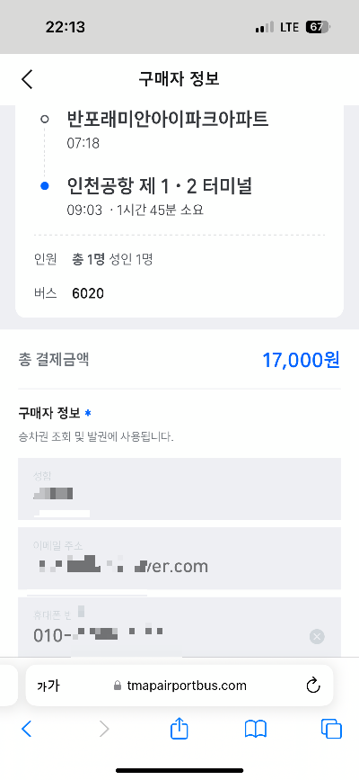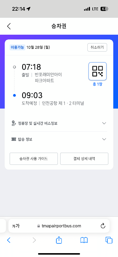 예매가 완료되었습니다. 이젠 탑승일에 QR코드를 보여주고 공항버스에 탑승하면 됩니다.