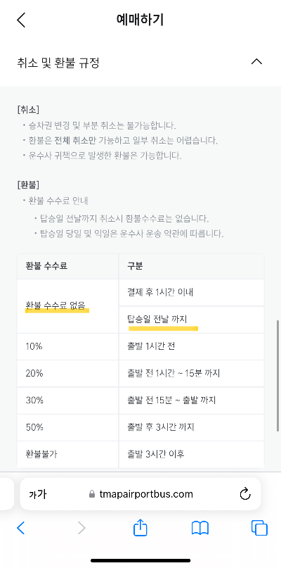 그리고 탑승 전날까지 취소가 발생하더라도 전액 환불이 가능했습니다.