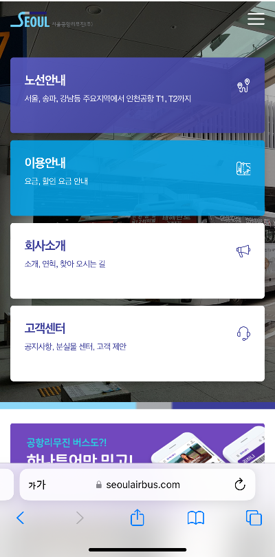 우선, 서울공항리무진 홈페이지(www.seoulairbus.com)에 접속합니다.
